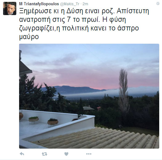 Δείτε την εικόνα που τραβήχτηκε στην Πάρνηθα, η οποία θυμίζει καρτ-ποστάλ, όπως απαθανατίστηκε και σχολιάστηκε στο twitter του Μάκη Τριανταφυλλόπουλου: