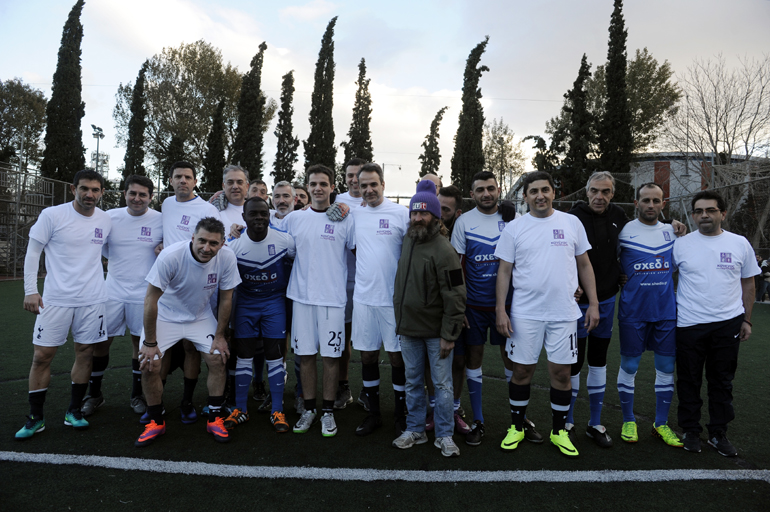 Η ομάδα της ΝΔ με αρχηγό τον κ. Μητσοτάκη «επιστράτευσε» τους πρωταθλητές του Euro 2004 Γιώργο Καραγκούνη, Τάκη Φύσσα αλλά και τον ευρωβουλευτή του κόμματος Θοδωρή Ζαγοράκη.