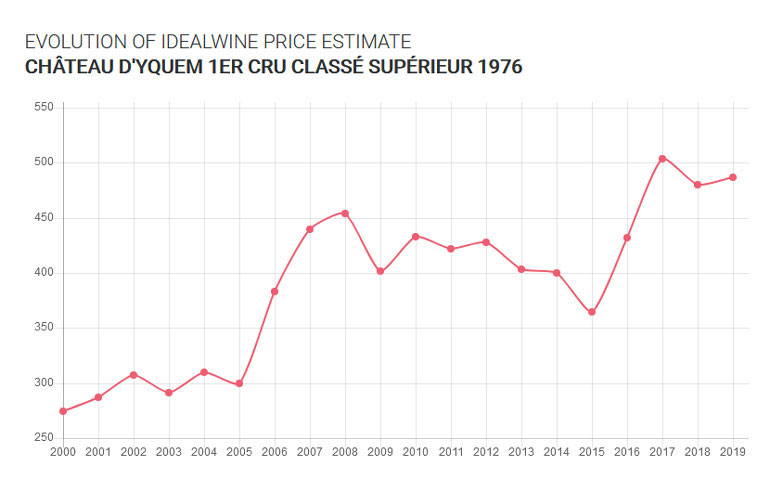 Το διάγραμμα διαμόρφωσης των τιμών αυτού του Grand Cru 1976 είναι ενδεικτικό της ανόδου της αξίας αυτού του μοναδικού κρασιού.