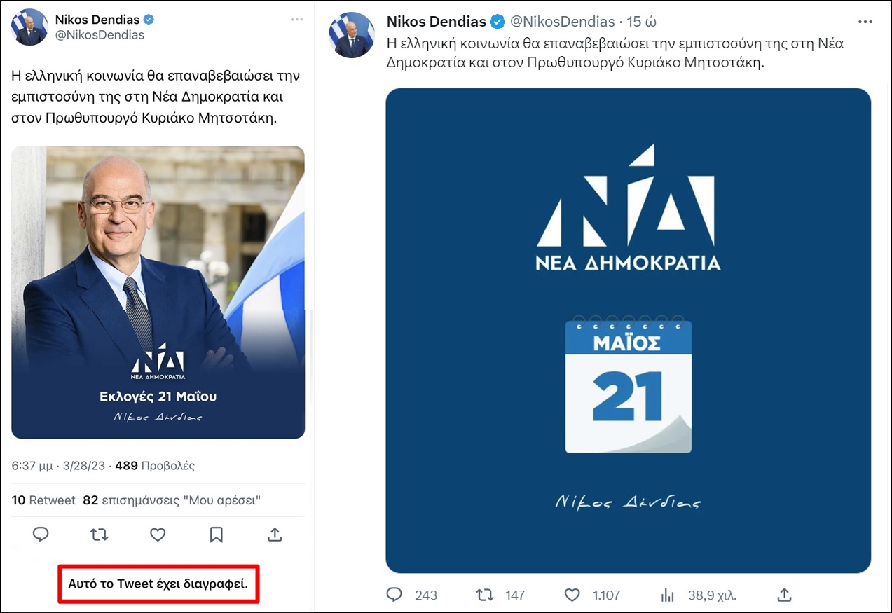 όταν ο Νίκος Δένδιας προέβη σε σχετική μουδιασμένη ανάρτηση στο «Twitter».