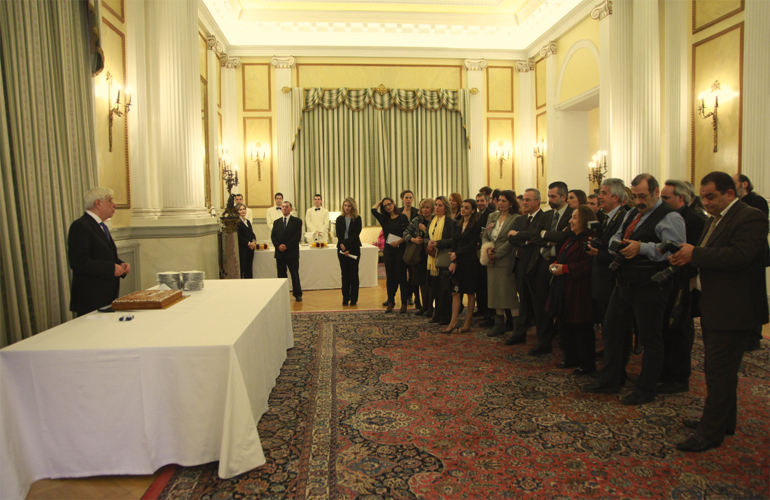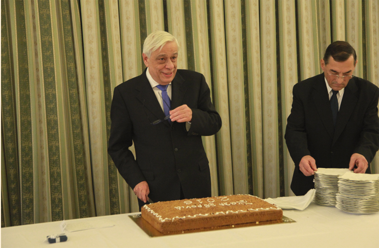 O Πρόεδρος της Δημοκρατίας έκοψε την πρωτοχρονιάτικη πίτα με δημοσιογράφους