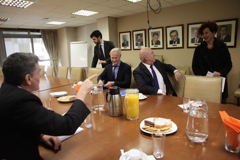 Η συνάντηση πραγματοποιήθηκε στο υπουργείο Οικονομικών το πρωί της Παρασκευής στο πλαίσιο της επίσκεψης του Γάλλου πρωθυπουργού Μπερνάρ Καζνέβ στην Αθήνα.