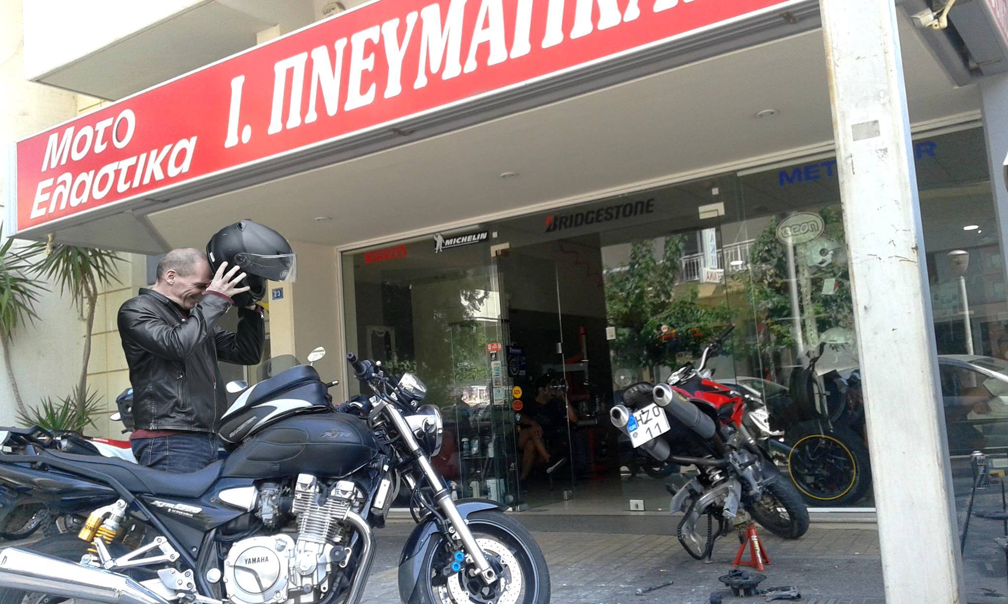 Ο τέως υπουργός Οικονομικών έφτασε στο Ηράκλειο με το πλοίο της γραμμής, ωστόσο, άμα τη αφίξει του τον έπιασε λάστιχο, αναγκάζοντάς τον να επισκεφτεί κατάστημα ελαστικών, όπου τον συνέλαβε ο φωτογραφικός φακός.