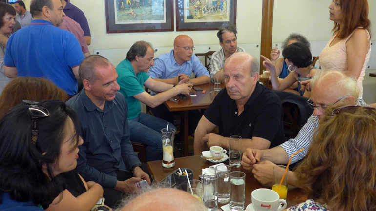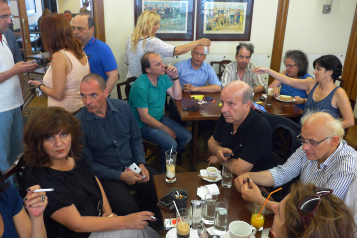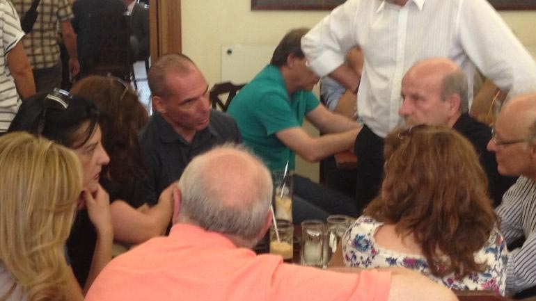 O Γιάνης Βαρουφάκης κάθισε να πιεί τον καφέ του μαζί με βουλευτές του ΣΥΡΙΖΑ, σχολιάζοντας τις τελευταίες εξελίξειςO Γιάνης Βαρουφάκης κάθισε να πιεί τον καφέ του μαζί με βουλευτές του ΣΥΡΙΖΑ, σχολιάζοντας τις τελευταίες εξελίξεις γύρω από την κρίσιμη διαπραγμάτευση…
