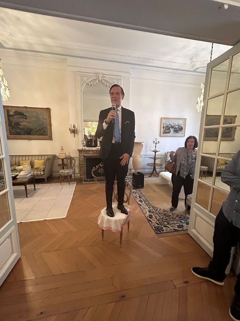 Μάλιστα, η φωτογραφία ντοκουμέντο που έχει στα χέρια της η «Ζούγκλα» καταγράφει με άριστο τρόπο τα κρυφά ταλέντα του νέου Έλληνα πρέσβη στην Αμερική. Με στενό κουστουμάκι πάνω σε έκτακτο καρεκλάκι, στρωμένο με λευκή πετσετούλα, εκφωνεί λογύδριο.