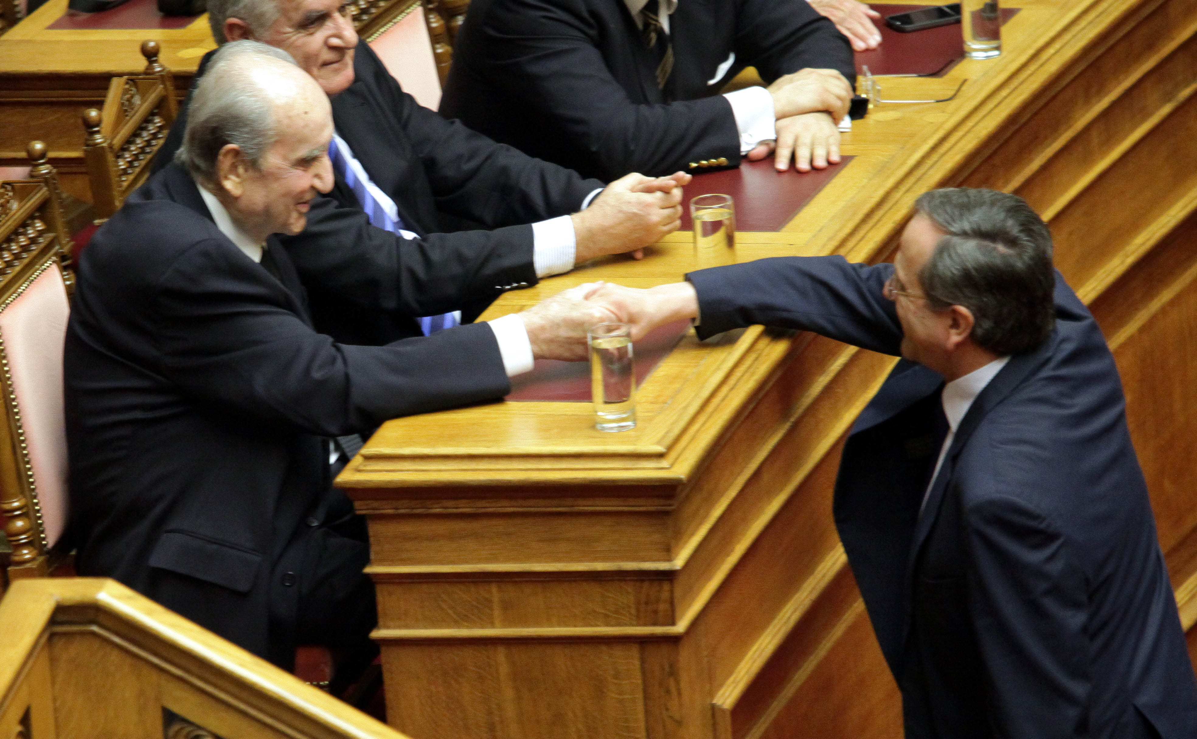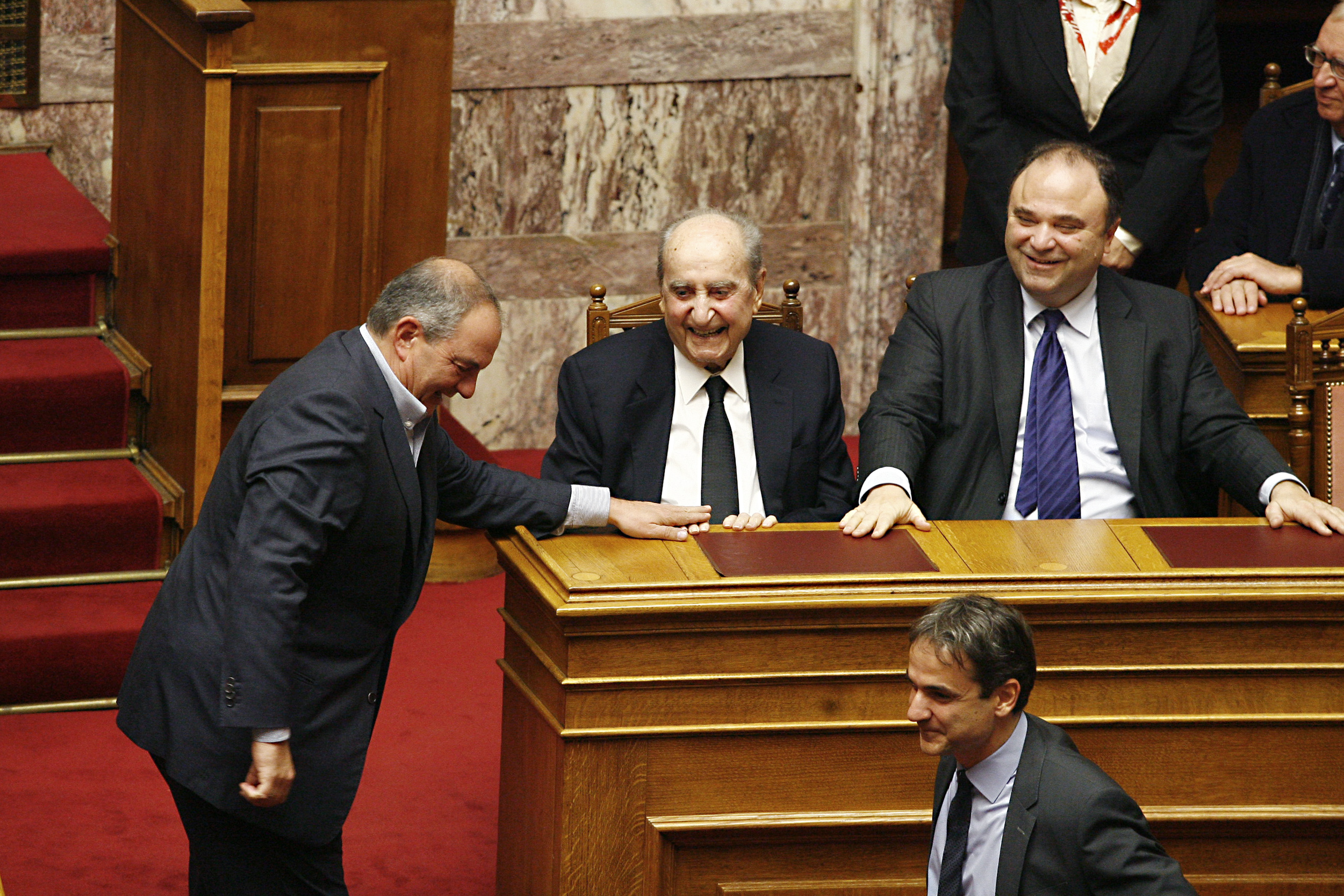 Την αιφνίδια παρουσία του -μετά από μεγάλο χρονικό διάστημα- στη Βουλή, καθώς και τον ίδιο, χαιρέτησαν οι πρώην πρωθυπουργοί Αντώνης Σαμαράς και Κωνσταντίνος Καραμανλής…