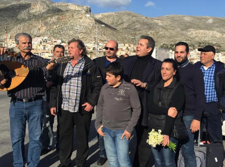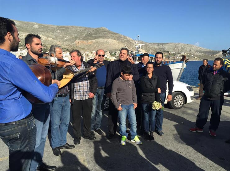 Οι Καλύμνιοι τον υποδέχτηκαν με βιολιά και λαούτα δίνοντας το έναυσμα της νίκης για τις εκλογές της 25ης Γενάρη.