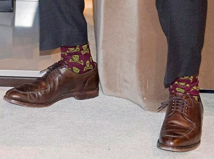 Στο Παγκόσμιο Οικονομικό Φόρουμ που διεξάγεται στο Νταβός, ένας άλλος ξένος πολιτικός φαίνεται ότι τράβηξε το αμείλικτο «βλέμμα» του φωτογραφικού φακού, φορώντας ένα ζευγάρι μπορντώ κάλτσες με πράσινες, φωσφοριζέ, νεκροκεφαλές.