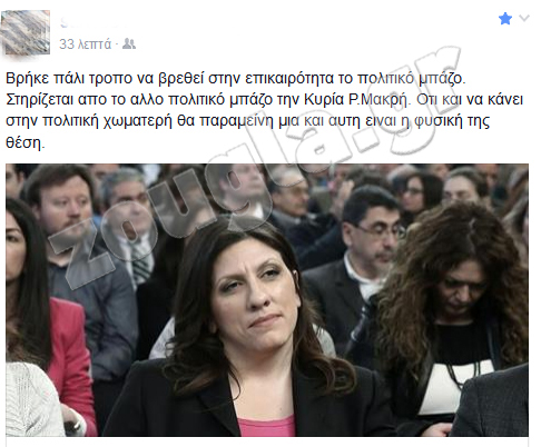 Είναι χαρακτηριστική η ανάρτηση στο Facebook κορυφαίου μάνατζερ στον κλάδο του αυτοκινήτου που εργάζεται πλέον στα Ηνωμένα Αραβικά Εμιράτα ο οποίος έγραψε χαρακτηριστικά: «Βρήκε πάλι τρόπο να βρεθεί στην επικαιρότητα το πολιτικό μπάζο. Στηρίζεται από το άλλο πολιτικό μπάζο την Κυρία Ρ. Μακρή. Ότι και να κάνει στην πολιτική χωματερή θα παραμείνει μια και αυτή είναι η φυσική της θέση».
