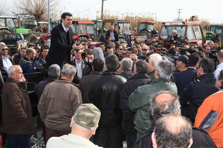 Όταν ο σημερινός πρωθυπουργός είχε μεταβεί σε συγκέντρωση αγροτών το 2013 στον Ορχομενό, είχε ανέβει σε ένα αγροτικό όχημα και είχε εξαπολύσει σφοδρή επίθεση στην τότε κυβέρνηση, υποστηρίζοντας ότι «οι σωτήρες της χώρας κρύβονται πίσω από τις κλούβες με τα ΜΑΤ».