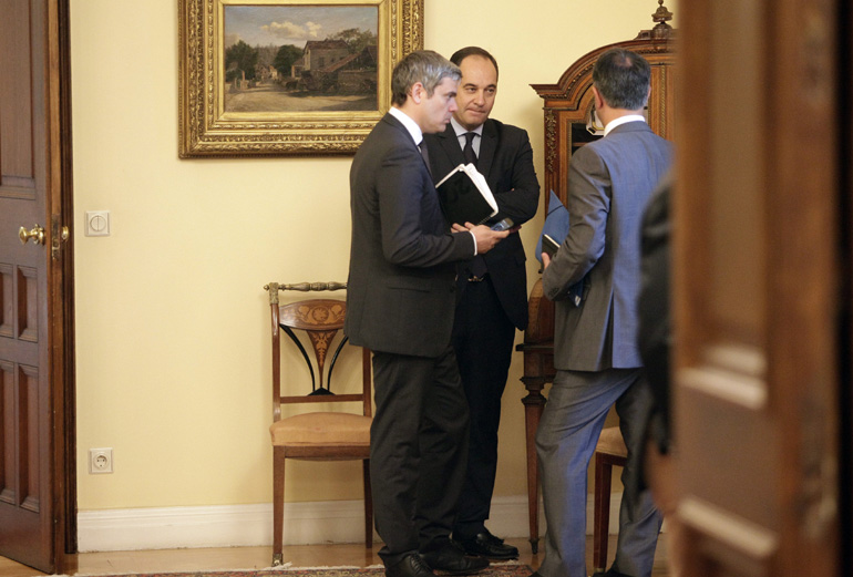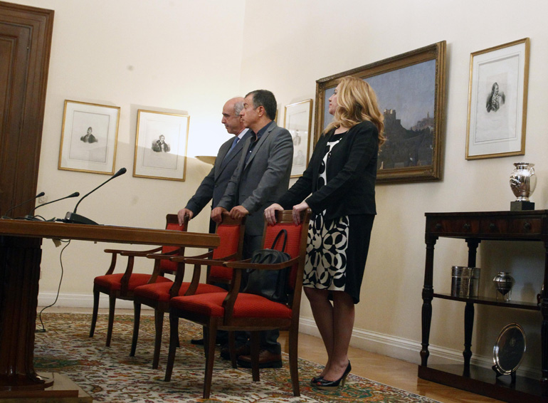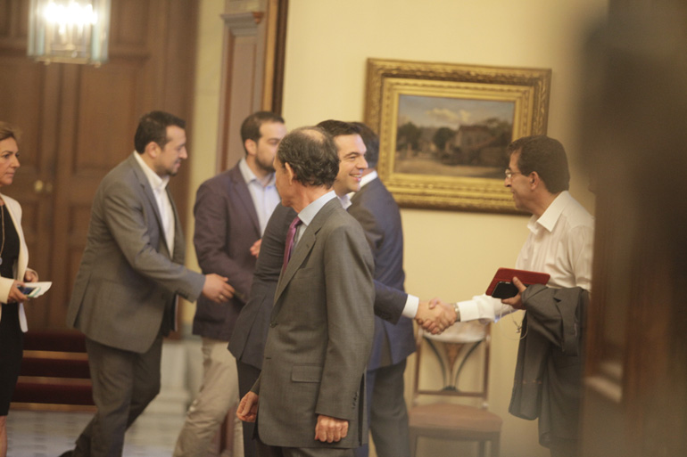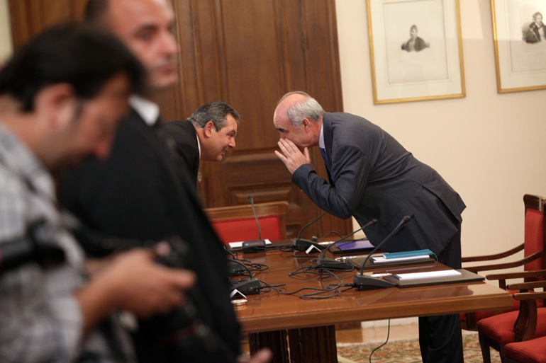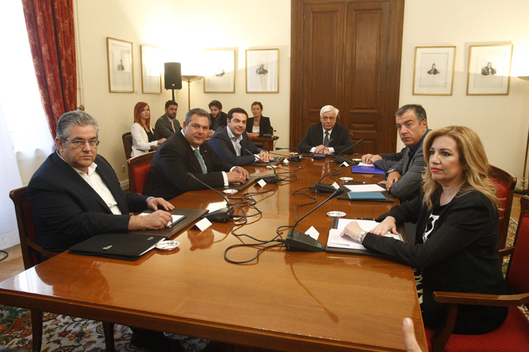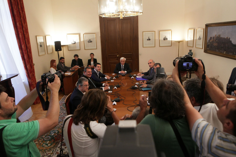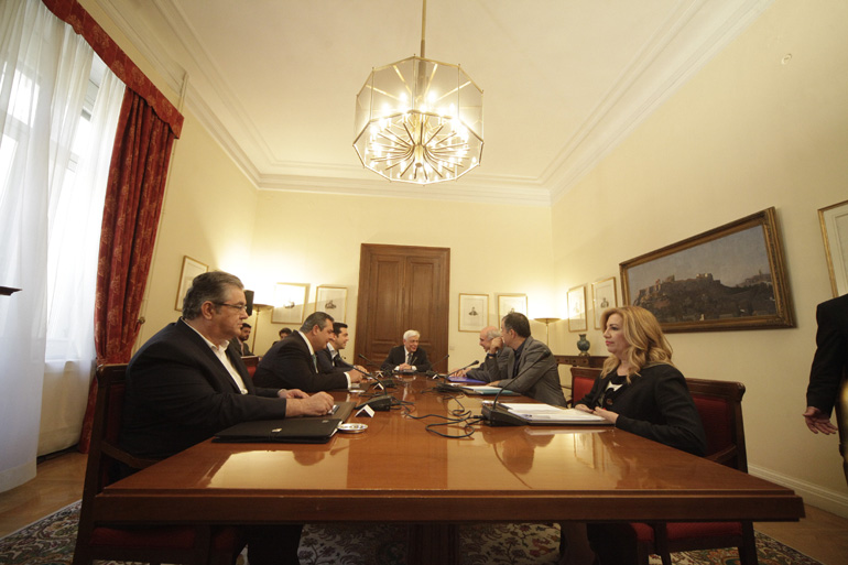 Συγκρατημένα χαμόγελα, ψιθύρους και μικρά πηγαδάκια απαθανάτισε, μεταξύ άλλων, ο φωτογραφικός φακός λίγο πριν από τη συνεδρίαση του συμβουλίου των πολιτικών αρχηγών με τη συμμετοχή του Προέδρου της Δημοκρατίας, Προκόπη Παυλόπουλου.
