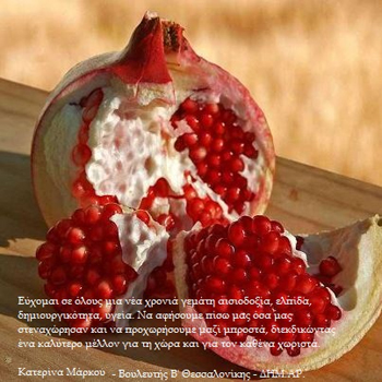 Στο δρόμο που χάραξε ο πρώην υπουργός, Δημήτρης Κρεμαστινός, βάδισε και η γοητευτική βουλευτής της Δημοκρατικής Αριστεράς, Κατερίνα Μάρκου, η οποία μας ευχήθηκε χρόνια πολλά με το αγαπημένο φρούτο σπασμένο στα τρία.