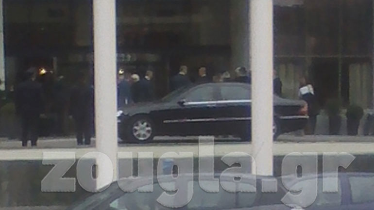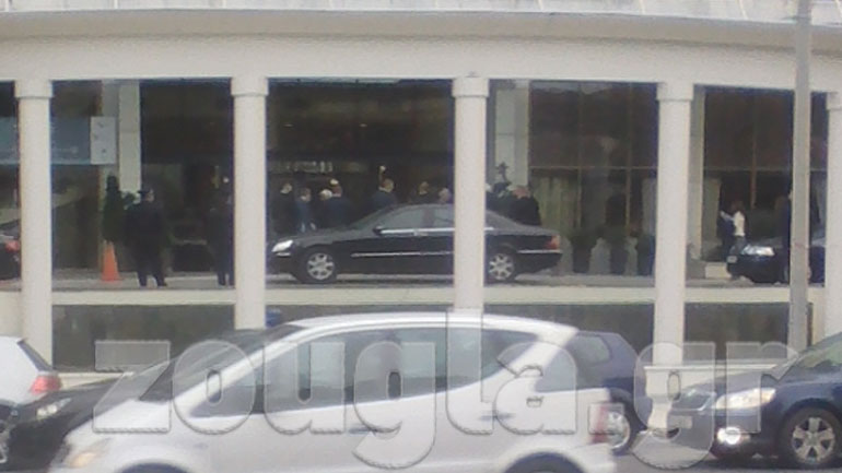 Σε αποκλειστικά φωτογραφικά στιγμιότυπα, που δημοσιεύει το zougla.gr, ο Πρόεδρος της Δημοκρατίας, στέκεται στην είσοδο του ξενοδοχείου και περικυκλωμένος από την προσωπική του φρουρά έχει ολιγόλεπτη συζήτησή με συνεργάτες του.