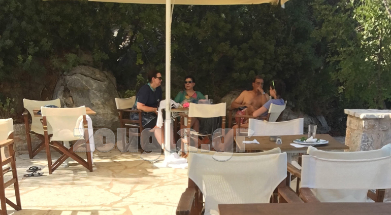 Ο πρώην υπουργός Οικονομικών, με τη σύζυγό του και ένα φιλικό ζευγάρι, ηρεμούν μακριά από τις σκοτούρες απολαμβάνοντας τον συνδυασμό του πράσινου της αρκαδικής φύσης και του γαλάζιου της πισίνας του ξενοδοχείου…