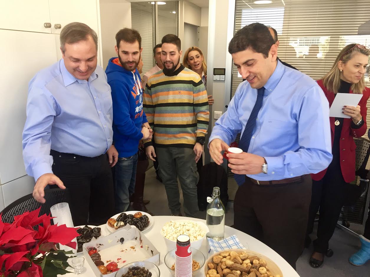 Τα πρώτα ευχητήρια μηνύματα έφτασαν στον Γραμματέα της ΝΔ, από τις πρώτες πρωινές ώρες – την ώρα δηλαδή που μπήκε η 15Η Δεκεμβρίου- ενώ σήμερα το γραφείο του, ήταν γεμάτο κόσμο από πολύ νωρίς.