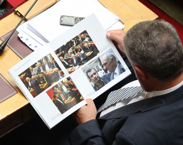Με ιδιαίτερη σπουδή και μεγάλο ενδιαφέρον διαβάζει ο βουλευτής ένα βιβλίο κατά τη διάρκεια της σημερινής ψηφοφορίας για τον πρόεδρο της Βουλής.