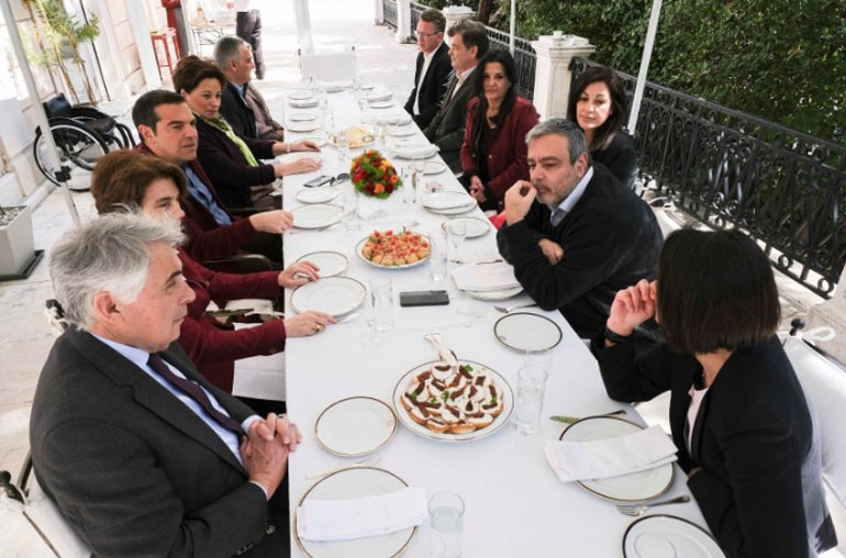 Γεύμα προς τιμήν των υποψήφιων ευρωβουλευτών 2019 παρέθεσε ο πρωθυπουργός το μεσημέρι του Σαββάτου στον κήπο του Μεγάρου Μαξίμου.
