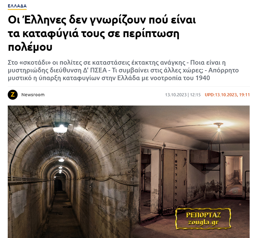 Η Ελλάδα είναι η μοναδική χώρα στον πολιτισμένο κόσμο όπου η ύπαρξη καταφυγίων, η λειτουργία τους, ο αριθμός πολιτών που θα εξυπηρετήσουν σε κατάσταση πολέμου, ο εξοπλισμός τους, η ακριβής τοποθεσία όπου βρίσκονται αποτελούν απόρρητο στρατιωτικό μυστικό. Σε όλον τον πολιτισμένο κόσμο όλα τα παραπάνω είναι γνωστά έως και πασίγνωστα. Οι πολίτες εκπαιδεύονται ώστε να γνωρίζουν που θα καταφύγουν όταν έρθει η κακιά η ώρα. Σε πολλές ευρωπαϊκές χώρες, στην Ιαπωνία, αλλά και αλλού, οι πολίτες εκπαιδεύονται συστηματικά. Εθελοντές ανά γειτονιά ξέρουν πώς θα παρέμβουν για να καθοδηγήσουν σωστά και υπεύθυνα τους συμπολίτες τους. Στα καταφύγια ανανεώνονται, υπό την επιτήρηση των αρμοδίων εθνικών αρχών, οι εξοπλισμοί των καταφυγίων και τα εφόδια. Δημοσιεύονται εκθέσεις με αποδεικτικά στοιχεία. Με λίγα λόγια, στις πολιτισμένες χώρες οι κρατικοί φορείς αποδεικνύουν εμπράκτως πως σέβονται τον φορολογούμενο και τον προστατεύουν αναλόγως.