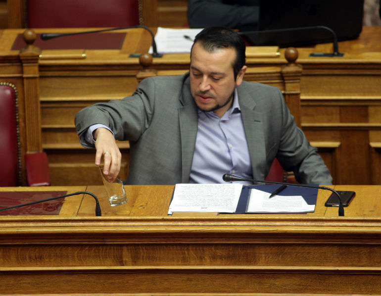 Τη στιγμή που στο βήμα της Βουλής βρισκόταν η Μισέλ Ασημακοπούλου, ασκώντας έντονη κριτική στην κυβέρνηση, ο υπουργός Επικρατείας, Νίκος Παππάς, είδε το ποτήρι που κρατούσε στα χέρια του να πέφτει… προσφέροντάς του μία ανάσα δροσιάς.