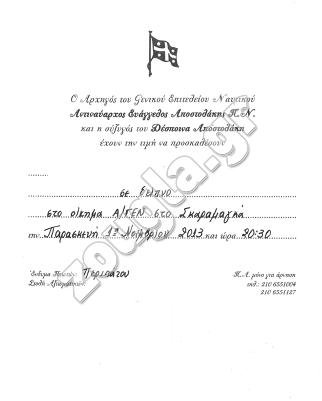 Ηχηρή ήταν η απουσία του πρώην αρχηγού του ΓΕΝ κ. Κ. Χρηστίδη και του πρώην αρχηγού Στόλου κ. Κ. Μαζαράκη-Ανιάν, όπως και άλλων, οι οποίοι, όπως λένε οι κακές γλώσσες, δεν μπόρεσαν να «ξεχάσουν» την επαναφορά του κ. Αποστολάκη από την αποστρατεία του στο ΠΝ το 2009 που είχε ως συνέπεια την δική τους απομάκρυνση.