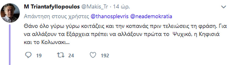 Το tweet του Μάκη Τριανταφυλλόπουλου για το βίντεο του Θάνου Πλεύρη στα Εξάρχεια...