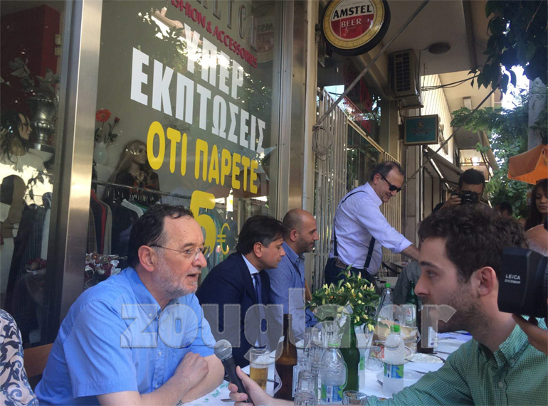 Από νωρίς το πρωί ο πρόεδρος της Λαϊκής Ενότητας Παναγιώτης Λαφαζάνης βρέθηκε με φίλους και συνεργάτες του σε ουζερί στη Νίκαια. Εκεί είχε την ευκαιρία να συνομιλήσει μαζί τους αλλά και να χαλαρώσει για λίγη ώρα.