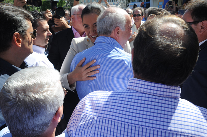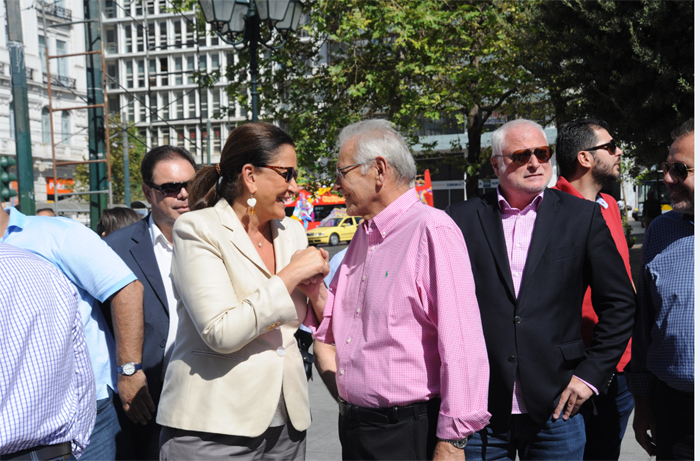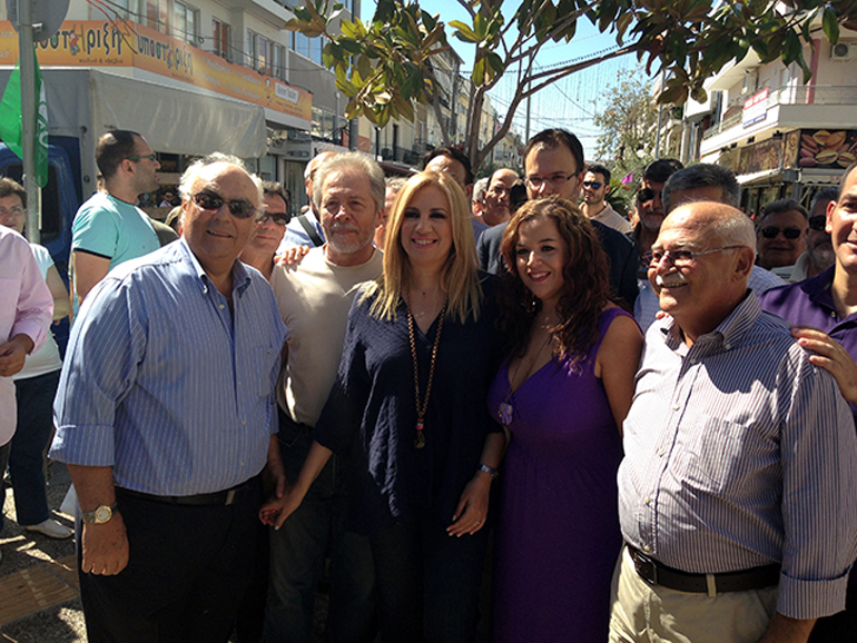 Στην πλατεία του Μπουρναζίου στο Περιστέρι, στο εκλογικό περίπτερο της Δημοκρατικής Συμπαράταξης, βρέθηκε το μεσημέρι του Σαββάτου η Φώφη Γεννηματά, μαζί με τον πρόεδρο της ΔΗΜΑΡ και επικεφαλής του ψηφοδελτίου Επικρατείας Θανάση Θεοχαρόπουλο.