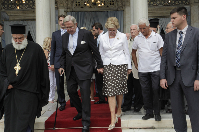 Όρκους αγάπης και αιώνιας πίστης αντάλλαξαν ο τ. Βασιλιάς Κωνσταντίνος και η Άννα Μαρία το απόγευμα της Πέμπτης στη Μητρόπολη της Αθήνας λίγο πριν το δείπνο με αφορμή τα 50 χρόνια γάμου τους στον Ναυτικό Όμιλο Πειραιά.