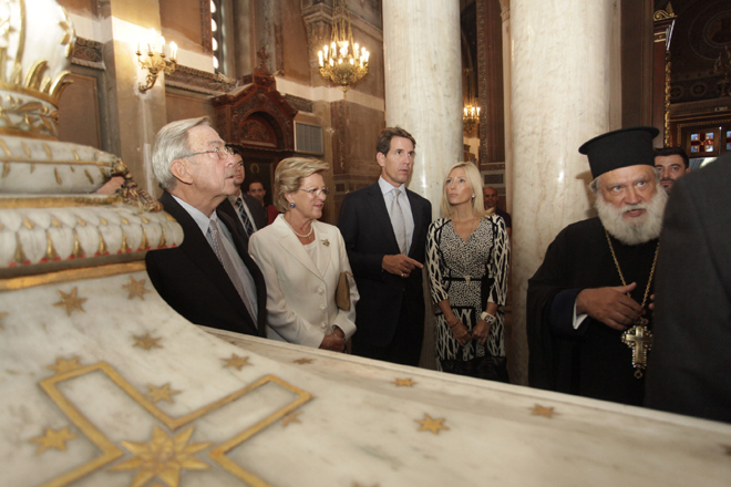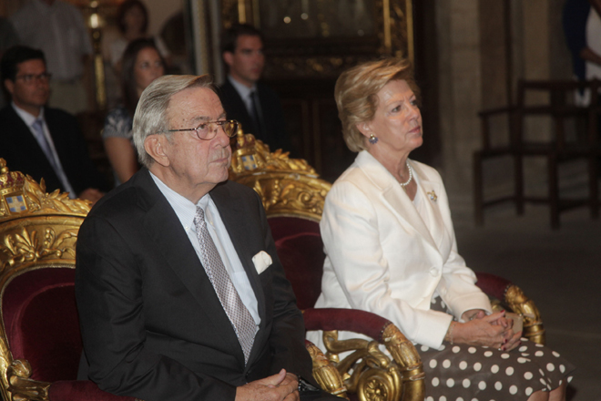 Ο Κωνσταντίνος και η Άννα Μαρία, ήταν ιδιαίτερα συγκινημένοι ειδικά τη στιγμή της ανάγνωσης της ευχής, που τους ανέφερε ως βασιλείς! Μάλιστα, για την τελετή όχι μόνο άνοιξε χθες εκτάκτως και κατ’ εξαίρεση η Μητρόπολη η οποία είναι υπό ανακατασκευή, αλλά βγήκαν από το υπόγειο και οι δυο θρόνοι που είχαν χρησιμοποιηθεί για το γάμο τους, στις 18 Σεπτεμβρίου του 1964.