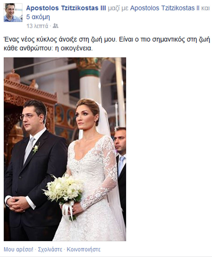 Mε μια ανάρτηση στον προσωπικό του λογαριασμό στο facebook και μια φωτογραφία ο Περιφερειάρχης κεντρικής Μακεδονίας Απόστολος Τζιτζικώστας έκανε γνωστό ότι εγκατέλειψε το κλαμπ των εργένηδων.