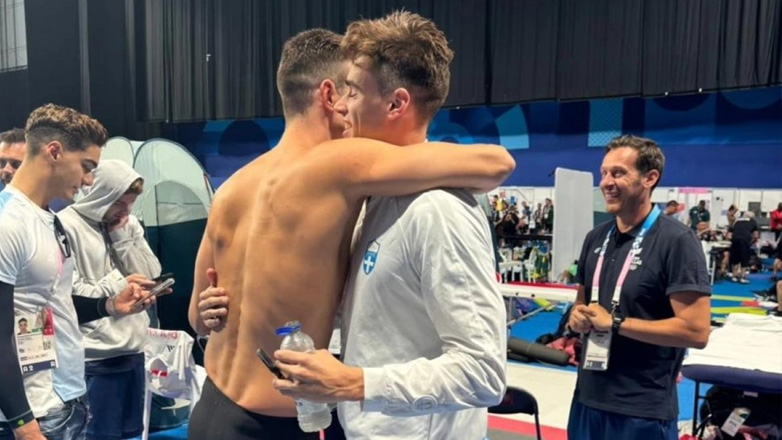 Μόλις τέλειωσε την ιστορική του κούρσα, ο κολυμβητής του Παναγιώτη Βελέντζα πήγε προς το μέρος τους και «πνίγηκε» στις αγκαλιές του, γνωρίζοντας την αποθέωση για τον θρίαμβό του, ο οποίος ήρθε μόλις δύο ημέρες, μετά την απώλεια του μεταλλίου στα 100 μέτρα ύπτιο για μόλις λίγα εκατοστά.