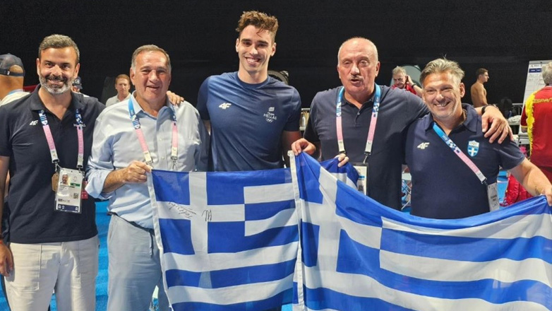Όπως είναι φυσικό άπαντες στην ελληνική κολυμβητική ομάδα πανηγύρισαν με τη ψυχή τους την τεράστια επιτυχία του Έλληνα πρωταθλητή στην «Paris La Defence Arena».