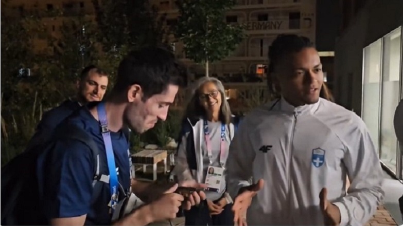 Ο Έλληνας Ολυμπιονίκης επέστρεψε στο Ολυμπιακό Χωριό εκεί όπου τον περίμεναν τα μέλη της ελληνικής αποστολής και ανάμεσά τους και ο φίλος και συγκάτοικος του στο Παρίσι Εμμανουήλ Καραλής!