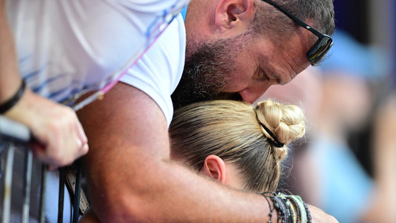 Μετά τον αποκλεισμό της από την τελική οκτάδα η Ελληνίδα ρίπτρια λύγισε και ξέσπασε στην αγκαλιά του προπονητή της, Γιώργου Μποτσκαριώβ, ο οποίος προσπαθούσε να την παρηγορήσει.