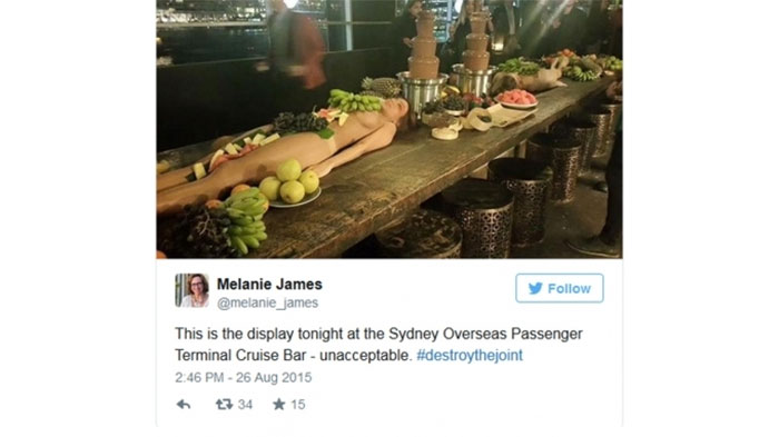 Εικόνες διόλου άγνωστες στο κοινό κατά το παρελθόν, αλλά εν έτη 2015 είναι μάλλον άτοπο η γυναίκα να χρησιμοποιείται ως ένα «έπιπλο». Εξ ου και έχει ξεσπάσει σάλος για ένα μπαρ της Αυστραλίας, που χρησιμοποιεί μοντέλα που χρησιμεύουν ως… φρουτιέρες.
