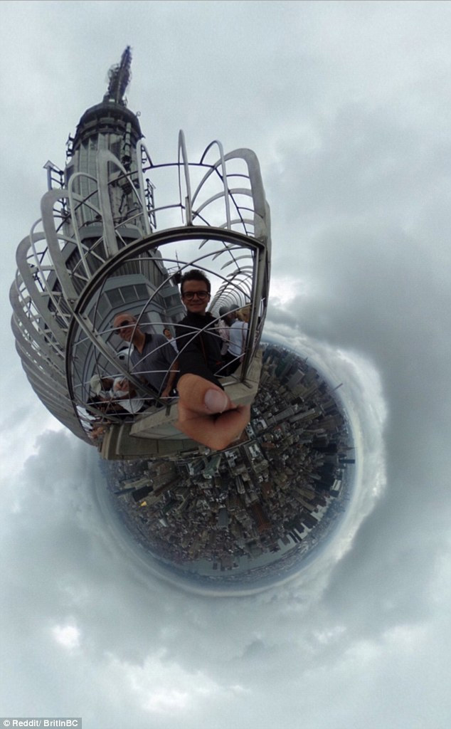 Mε τη βοήθεια της τεχνολογίας και με τη χρήση κάμερας 360 μοιρών ο Βρετανός απαθανάτισε τον εαυτό του σε μία φωτογραφία «βέρτιγκο» στα 381 μ., από την κορυφή του πιο γνωστού κτηρίου στον κόσμο, του Empire State Building στη Νέα Υόρκη.