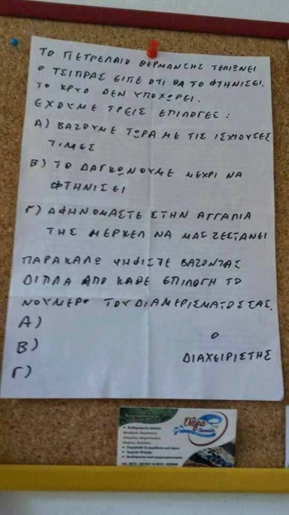 Τον γύρο του διαδικτύου κάνει η ανακοίνωση που έβγαλε διαχειριστής πολυκατοικίας για το πετρέλαιο θέρμανσης. Αν και ανορθόγραφη, είναι απολαυστική...