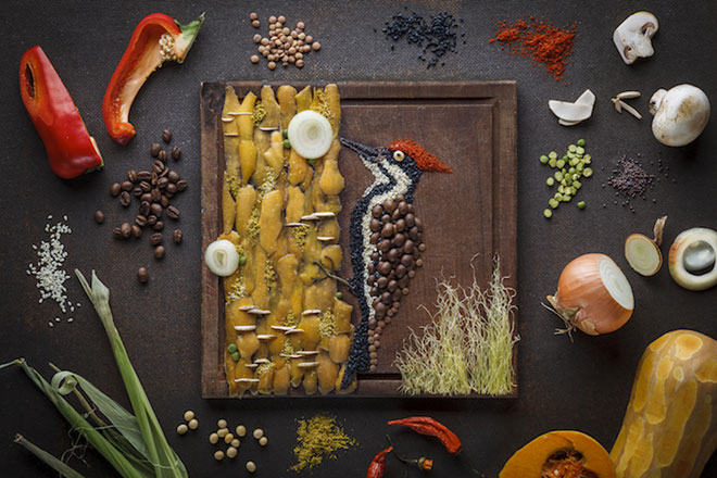 Η φωτογράφος τροφίμων Anna Keville Joyce λατρεύει τα πτηνά και προς τιμήν τους αποφάσισε να δημιουργήσει με διάφορους σπόρους και λαχανικά μικρά έργα τέχνης στα πιάτα.