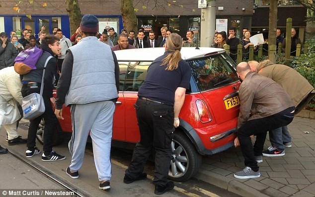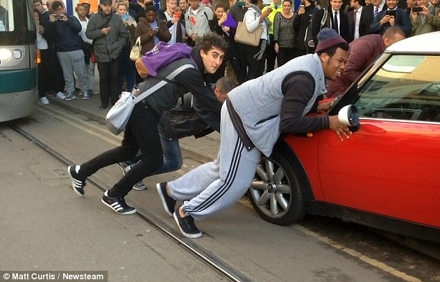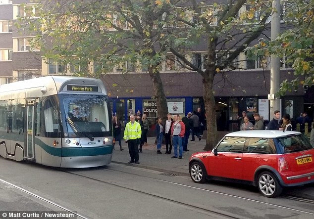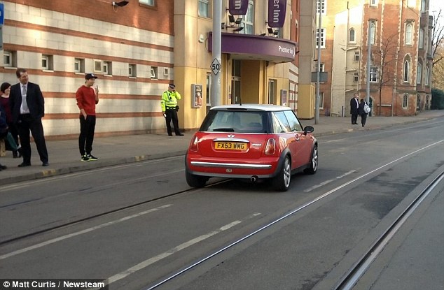 Ένα απίστευτο στιγμιότυπο εξελίχθηκε το απόγευμα της Πέμπτης στο Νότιγχαμ της Βρετανίας. Μια ασυνείδητη οδηγός πάρκαρε το Mini Cooper της πάνω στις γραμμές του τραμ με αποτέλεσμα να εμποδίζει τη διέλευση των συρμών.