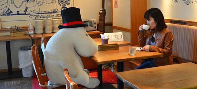 Tο Ιαπωνικό εστιατόριο «Moomin Cafe» τοποθετεί όσους έρχονται για φαγητό μόνοι τους με ένα μεγάλο λούτρινο ζωάκι για να τους κρατάει συντροφιά.