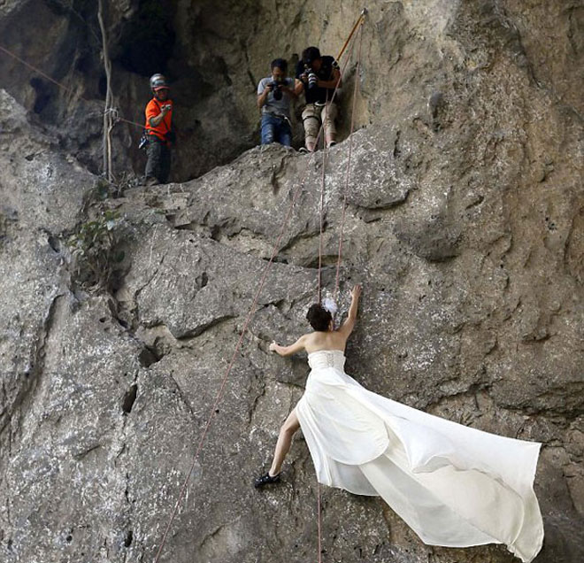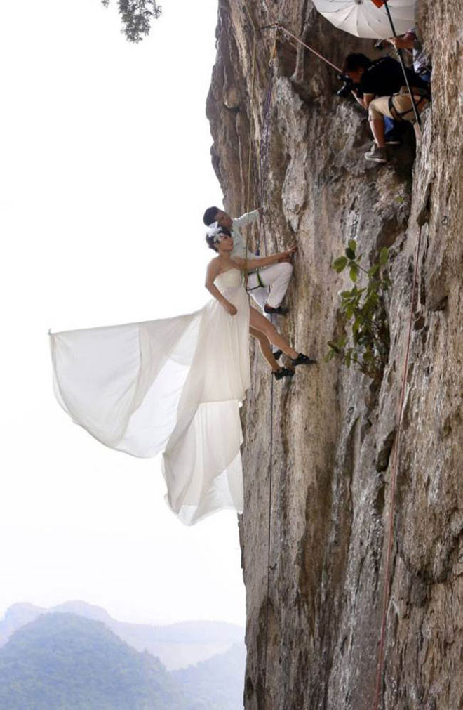 Ένα παράτολμο ζευγάρι αποφάσισε να κάνει έναν άκρως πρωτότυπο γάμο. Πρόκειται για την Fang Jing και τον σύζυγό της Lu Zhao που λατρεύουν και οι δυο τα extreme σπορ. Εξαιτίας αυτού του πάθους τους αποφάσισαν να τελέσουν το γάμο τους στην άκρη ενός γκρεμού και να τραβήξουν μερικές εκπληκτικές φωτογραφίες.