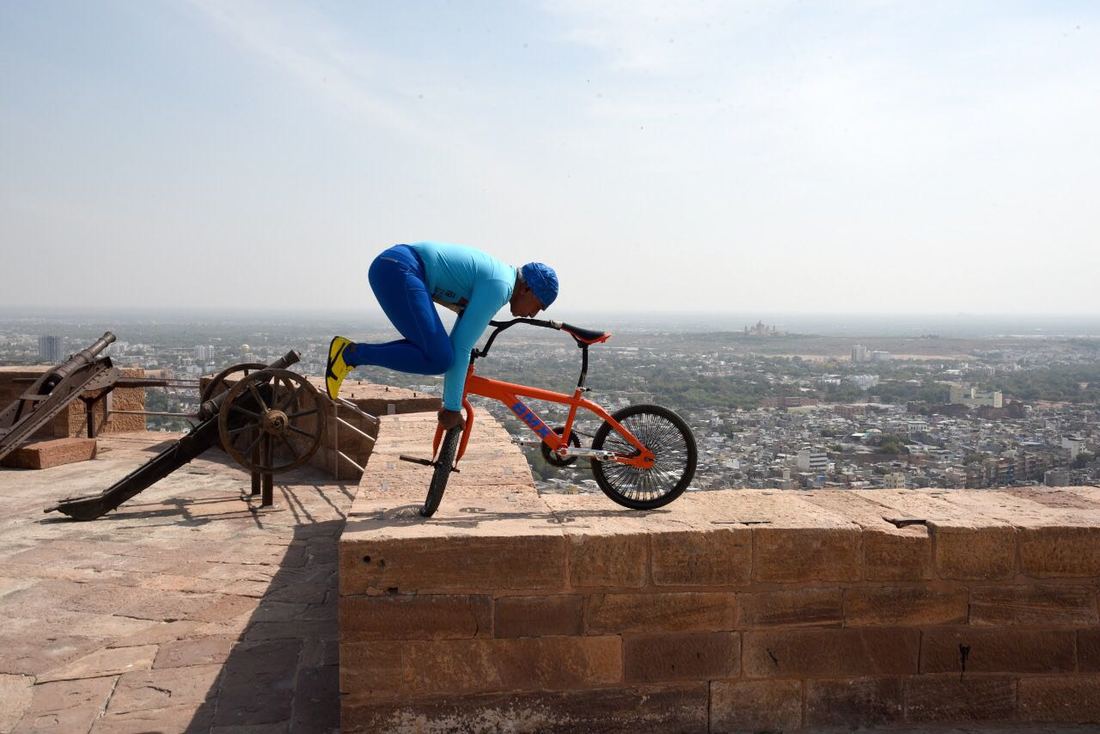 Στο βίντεο θα τον δείτε να ισορροπεί στα pegs και σε άλλα σημεία ενός ποδηλάτου BMX, στο χείλος του γκρεμού.