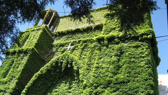 Είναι μία από τις πιο παράξενες εκκλησίες στον κόσμο, καθώς οι τοίχοι της καλύπτονται εξωτερικά από πυκνά καταπράσινα φυτά και λουλούδια.
