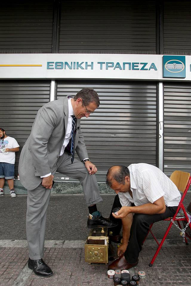 Περίμενε έξω από το υπουργείο Οικονομικών, μαζί με τους δημοσιογράφους, τον Γιάνη Βαρουφάκη και μόλις βγήκε από την πόρτα άρχισε να φωνάζει: «Είσαι προδότης και δωσίλογος. Είσαι Εβραίος του Σατανά. Έρχεται το τέλος σου!».