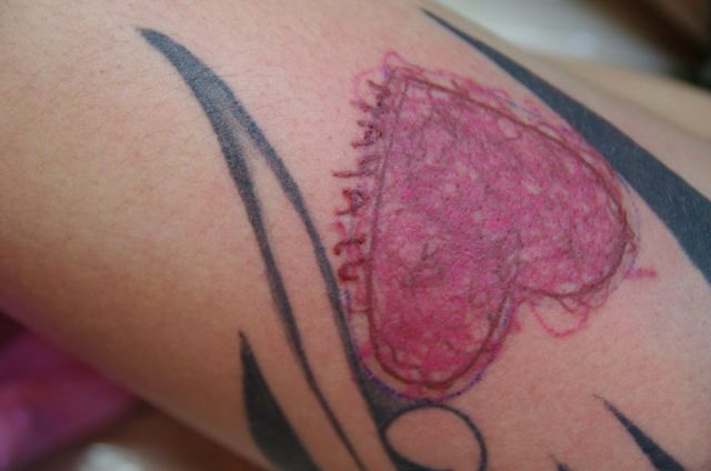 Περίπου 7 ετών είναι η μικρή, που με την παρότρυνση του πατέρα της έχει ξεκινήσει να «μουτζουρώνει» με τατουάζ φίλους και συγγενείς.