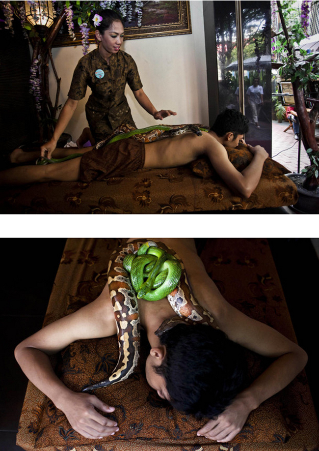 Μία νέα μέθοδο χαλάρωσης έχουν εφεύρει οι ειδικοί στην Τζακάρτα, η οποία ομολογουμένως απευθύνεται σε… τολμηρούς! Η νέα μόδα, που κάνει θραύση σε άτομα όλων των ηλικιών, είναι spa με… πύθωνες!