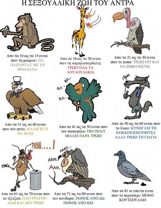 Η σεξουαλική ζωή ενός άντρα όπως αυτή διαμορφώνεται με το πέρασμα του χρόνου μέσα από μερικά πολύ διασκεδαστικά και έξυπνα σκίτσα...