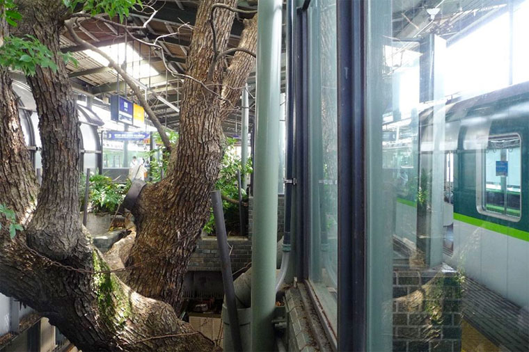 Στα βόρεια προάστια της Οζάκα, στην Ιαπωνία, υπάρχει ένας παράξενος σταθμός τραίνου. Ο σταθμός Kayashima έχει ένα τετράγωνο άνοιγμα στον οροφή της υπερυψωμένης πλατφόρμας του, από το οποίο… ξεμυτίζει ένα γιγαντιαίο δέντρο. Ένα δέντρο περίπου 700 ετών όπως εκτιμούν οι ειδικοί.