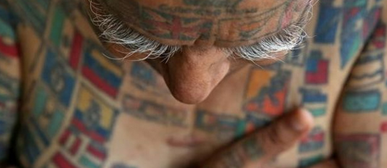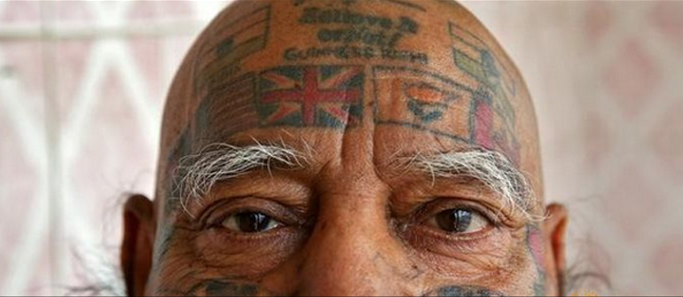 Ο 76χρονος Ρίσι από την Ινδία μπήκε στο βιβλίο Γκίνες για την εμμονή του με τα τατουάζ. Έχει σε όλο του το κορμί 500 τατουάζ και τα 366 από αυτά είναι σημαίες χωρών.