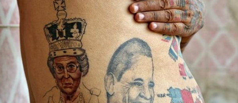 Στην κοιλιά του έχει επίσης «χτυπήσει» το πρόσωπο της βασίλισσας Ελισάβετ και του Μπαράκ Ομπάμα.